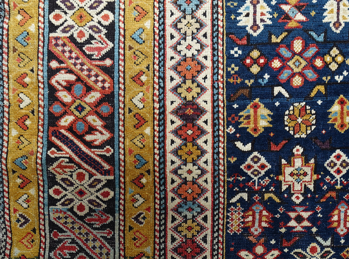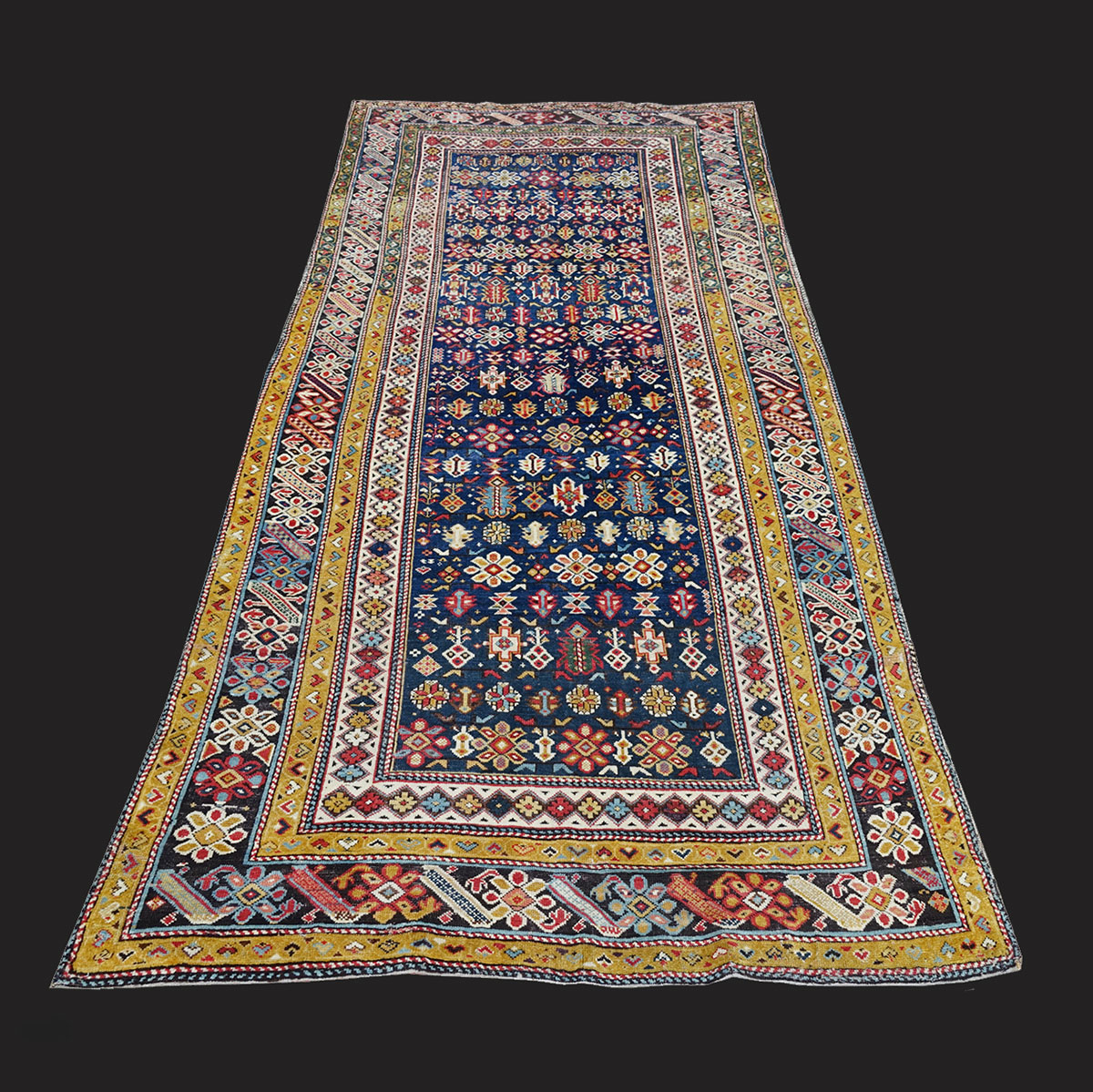 Antico tappeto Khyrdagyd Ci Ci che vanta una colorazione particolarmente varia e bella. Tra la gamma dei colori spicca specialmente nel ambito della cornice una grande quantità di giallo. Tappeto da collezione.