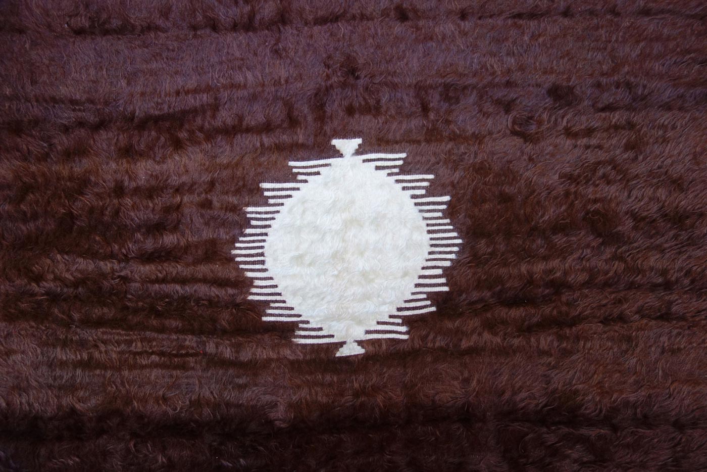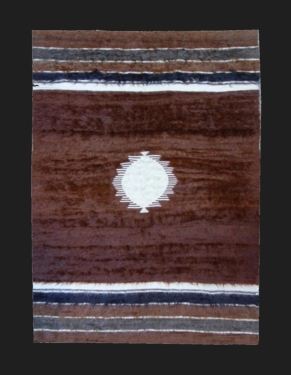 Tessitura con le lane mohair della capra Angora. Le coperte "siirt battaniyesi", provenienti dalle tribù semi-tribali attorno al città Siirt, venivano eseguiti con il vello lungo e luminoso nelle tonalità naturali dell'animale.