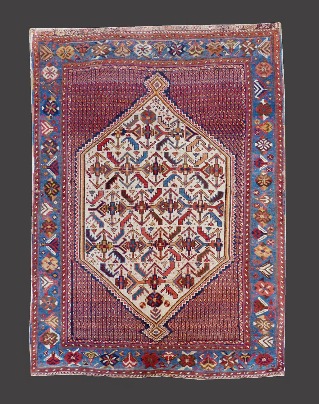 Piccolo gioiello della tribù degli Afshar. Il tappeto esprime sia in colori che in ornamentazioni l'anima tribale e genuina della sua provenienza. Una bordura a fondo azzurro chiaro crea la cornice di questo tappeto da collezione.