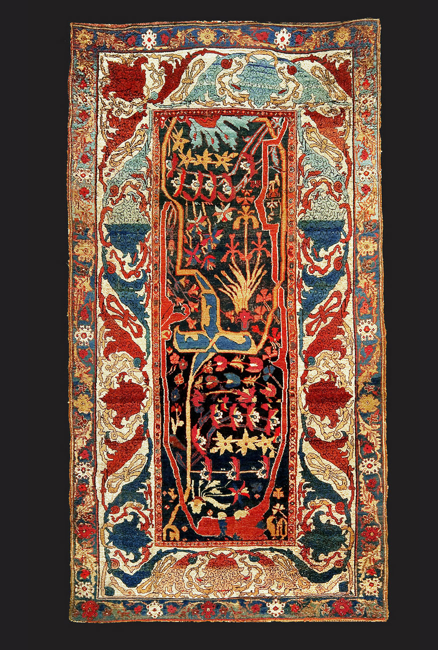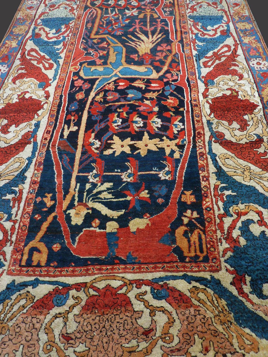 Tappeto Bidjar Garrus che presenta il disegno Garrus, derivante da ornamentazioni antiche, in una delle varianti più espressive e stravaganti. Soltanto pochi esemplari sono conosciuti con un impianto simile. Opera d'arte di grande impatto.